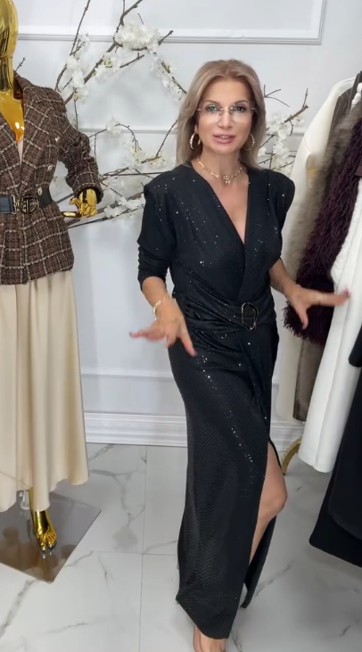 ✨Seksowna sukienka maxi z cekinami i rozcięciem, sukienka wieczorowa z paskiem ozdobnym ✨