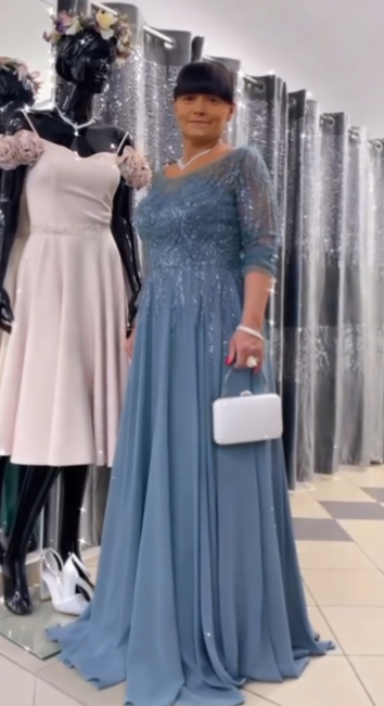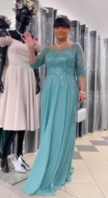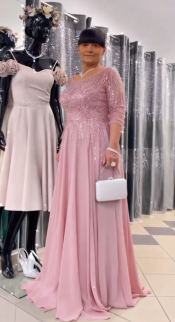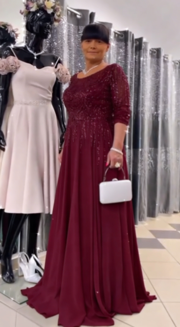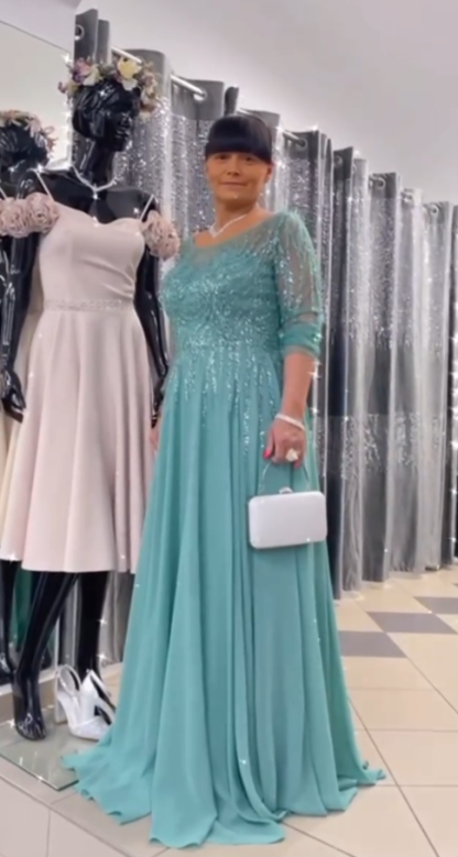 ✨ Sukienka maxi z półdługimi rękawami i błyszczącymi zdobieniami, model dla dorosłych