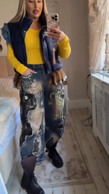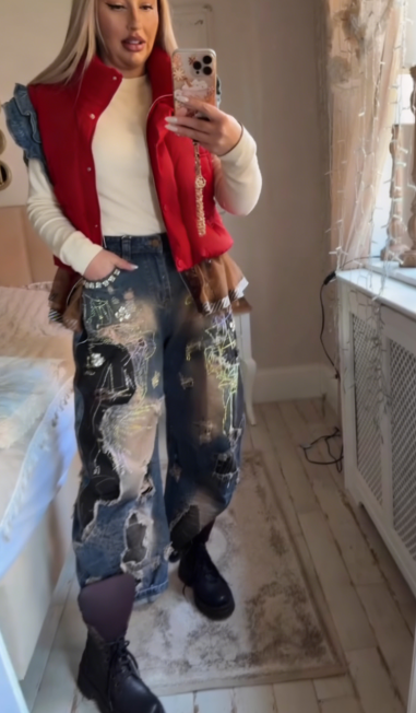 ✨ Unikalny design streetwearowy: Kombinacja eleganckiej kamizelki i artystycznych spodni jeansowych tworzy oryginalny look, który wyróżnia się na tle innych stylizacji.
