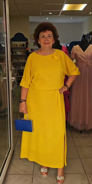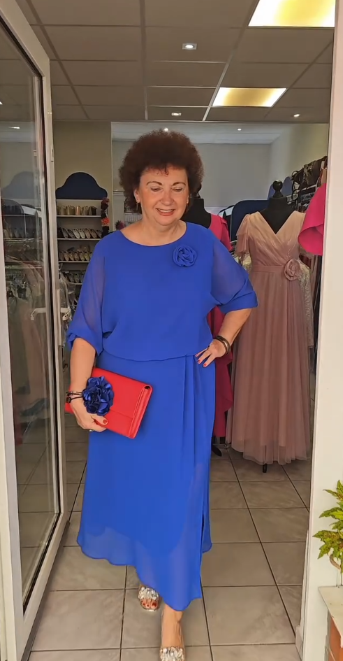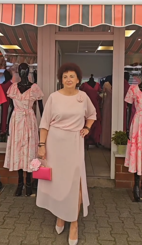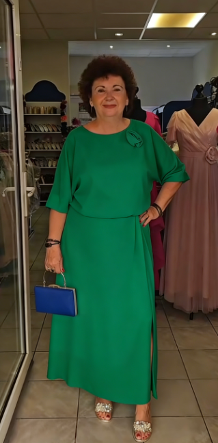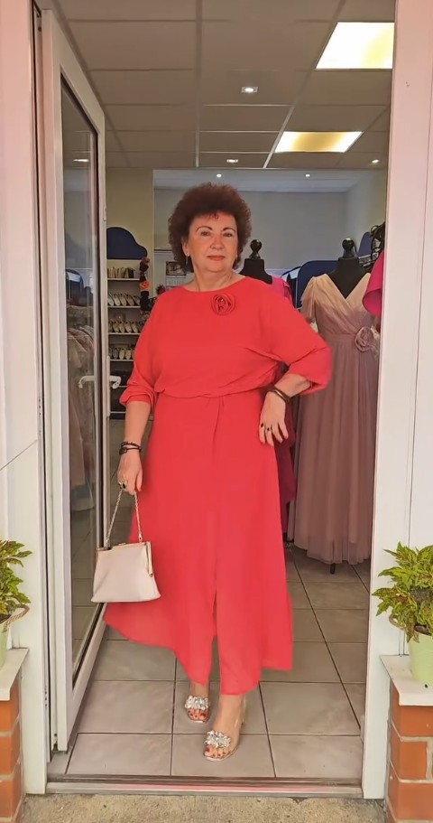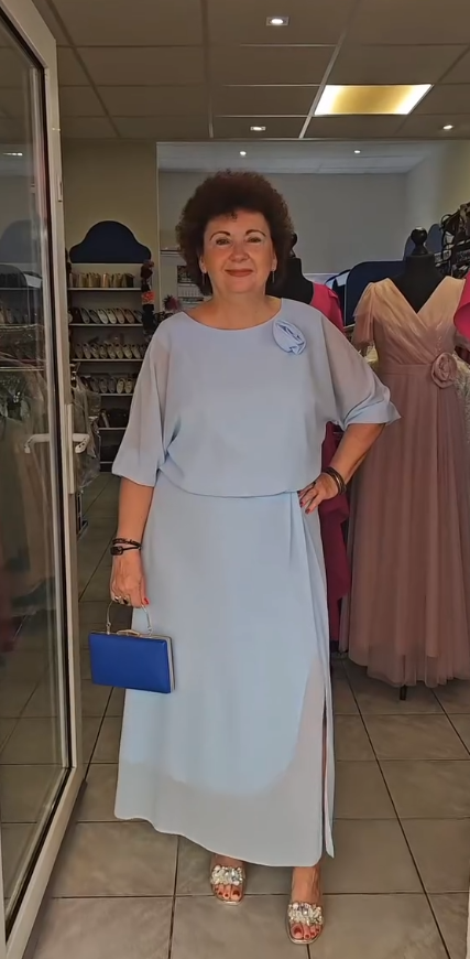 • Perfekcyjne podkreślenie sylwetki: Luźniejsza bluzka i dopasowana spódnica z rozcięciem wydłużają sylwetkę, podkreślają talię i biodra, pasując do różnych typów figury.