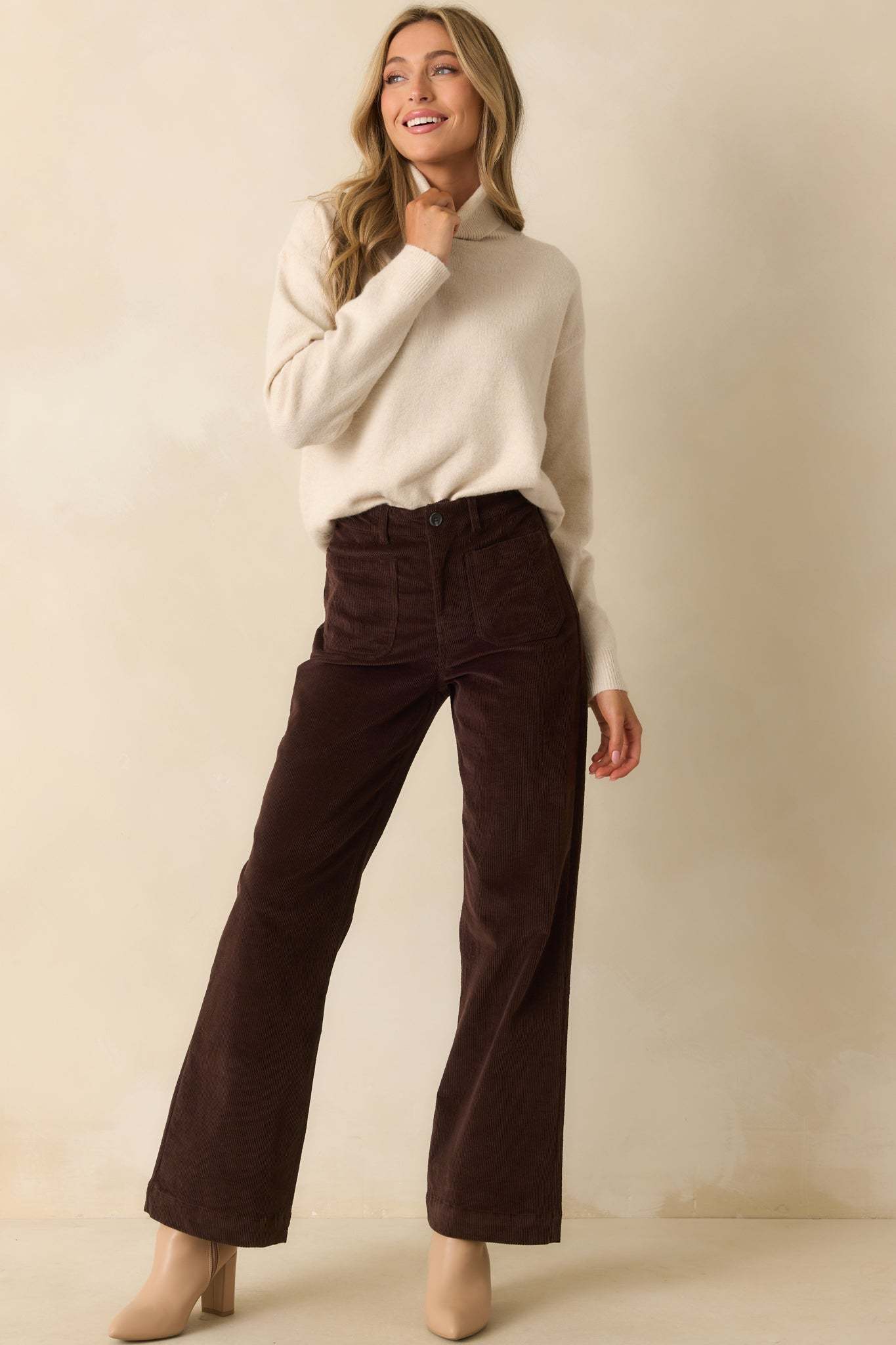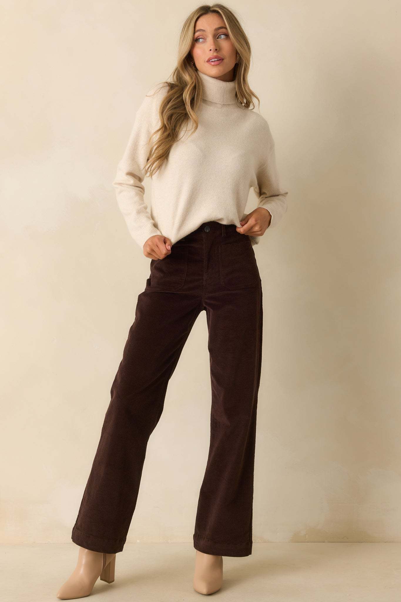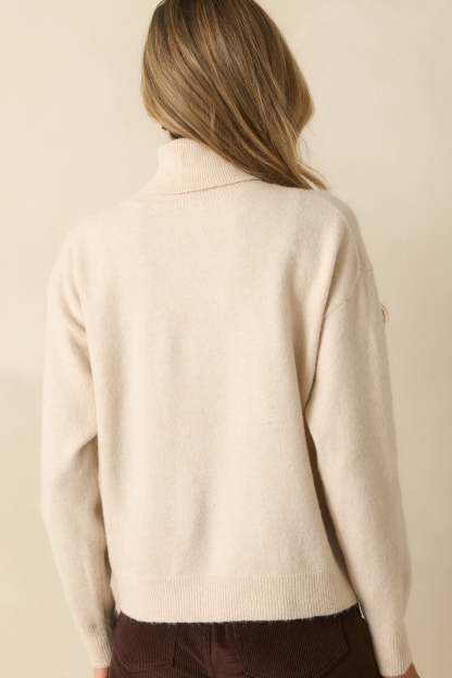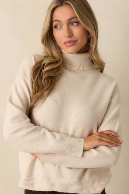 The For The Best Light Beige Knit Long Sleeve Turtleneck Sweater is always the right choice, bringing a classic feel that keeps you looking your best without even trying. This light beige sweater features a classic fold-over turtleneck collar, long sleeves, ribbed knit trim at the neckline, cuffs, and hem, and a relaxed silhouette.