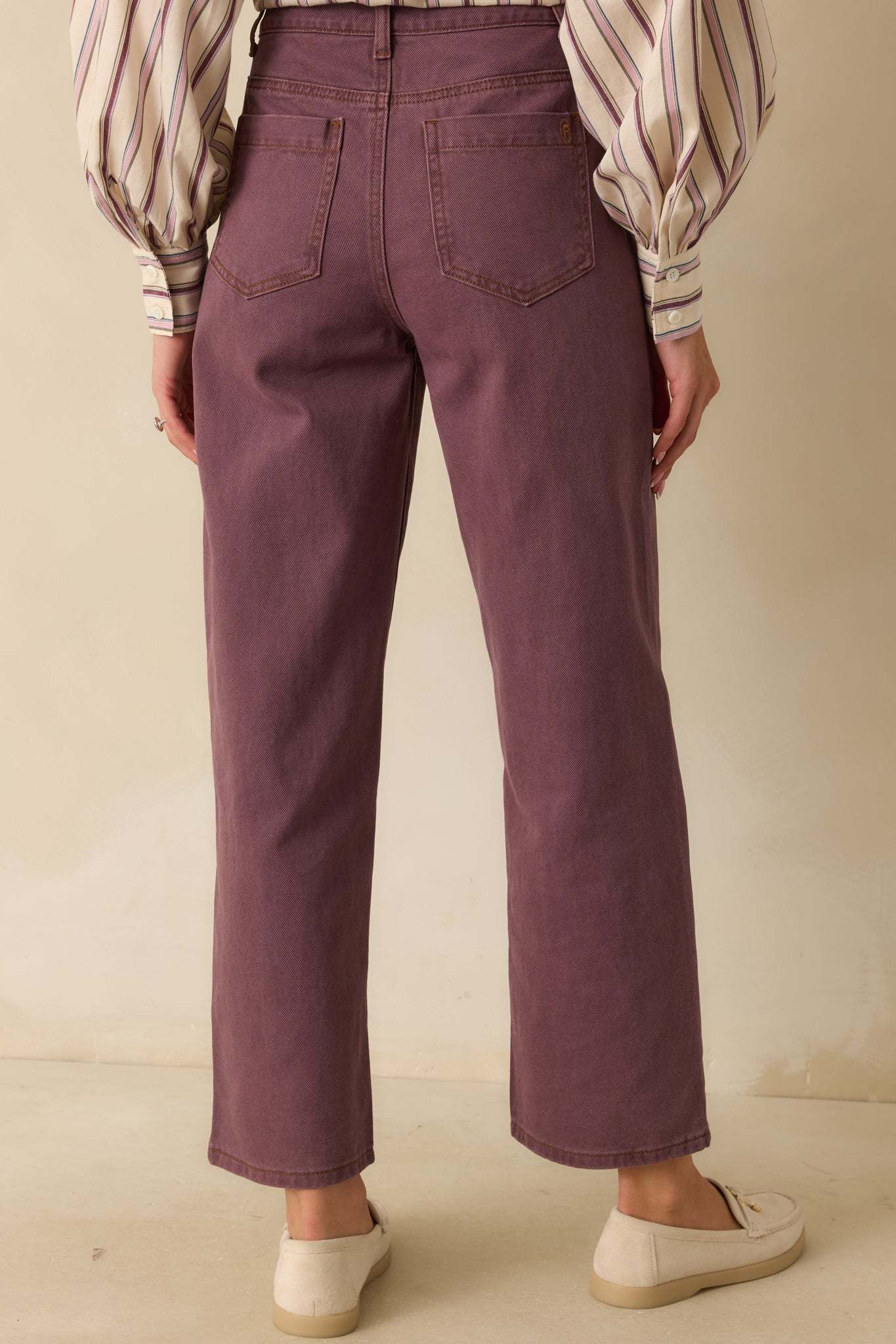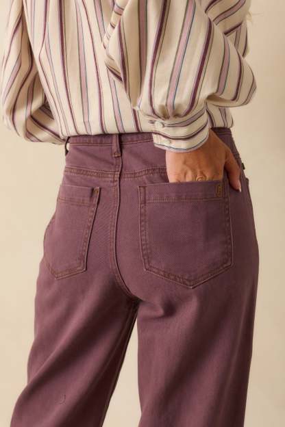 The FRNCH Violet High Rise Pepper Jeans bring a fresh twist to a classic silhouette with their soft plum-toned wash and effortlessly modern fit. Structured yet easygoing, they’re the kind of denim that pairs just as well with polished blouses as with your favorite knits. These violet jeans feature a high-rise waist and straight-leg silhouette crafted from structured cotton denim with functional pockets and a classic zip fly closure.