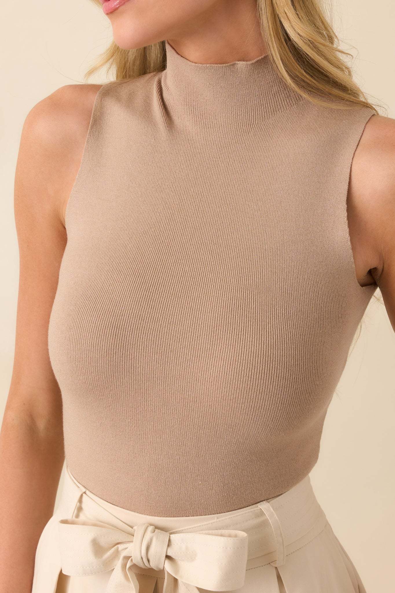 The It’ll Work Out Taupe Ribbed Mock Neck Sleeveless Bodysuit is the kind of piece that just makes getting dressed easier. It’s sleek, simple, and ready to go whenever you are. This taupe bodysuit features a mock neckline, soft ribbed knit fabric, sleeveless design, and a double snap button closure.