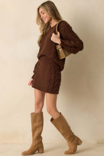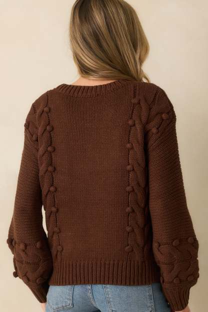 The Let’s Be Honest Chocolate Brown Cable Knit Long Sleeve Sweater keeps things true to form, a classic knit with an easy feel that’s made for everyday wear. This chocolate brown sweater features chunky cable knit design, bobble details throughout, a crew neckline, long sleeves, and a ribbed hem.