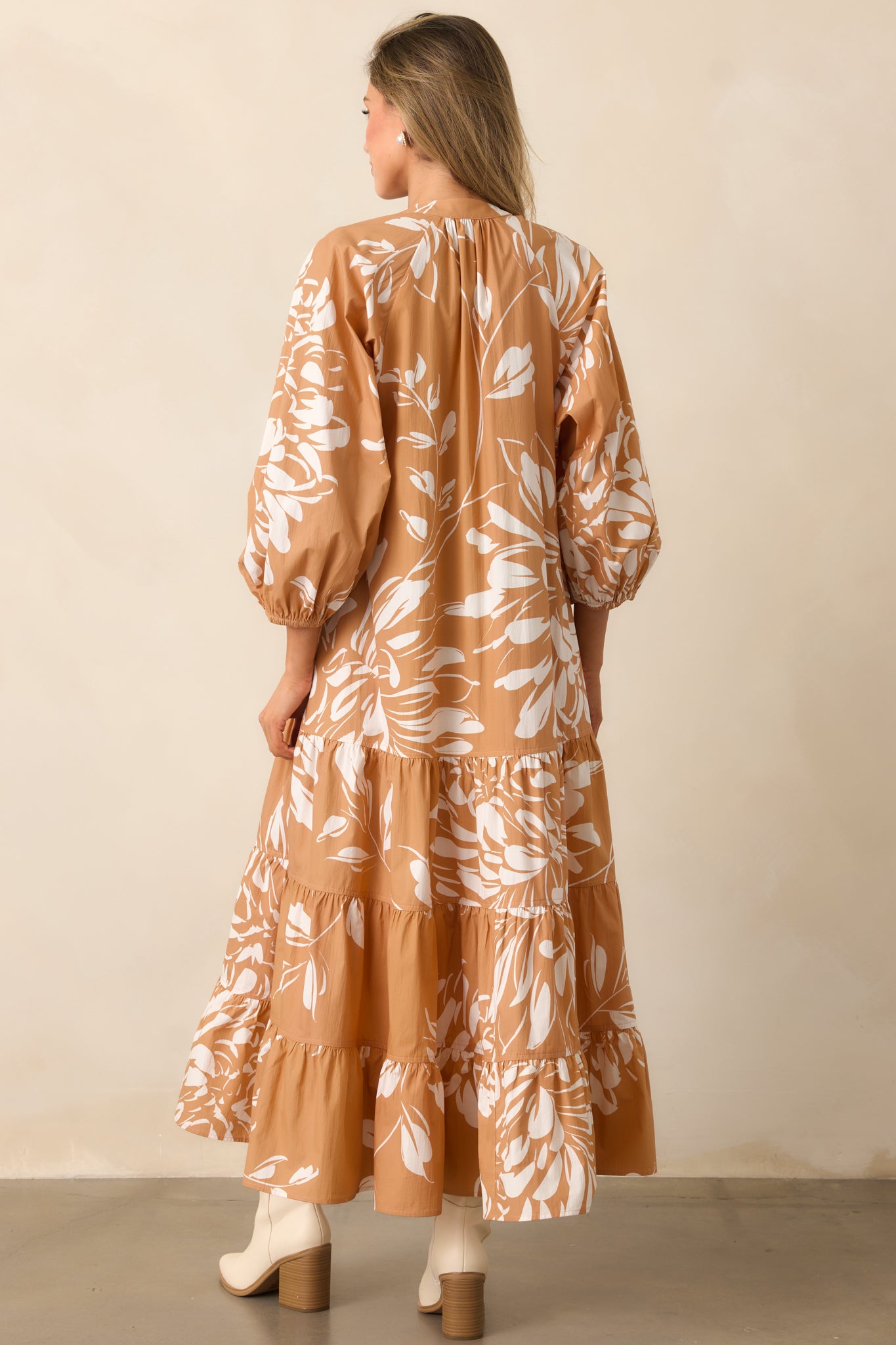 The Prosperina Adelaide Fawn Brown Multi Floral Print Cotton Maxi Dress has a graceful presence, blending vibrant detail with an effortless flow that feels made for long days, lively gatherings, and moments that linger. This maxi dress features an exclusive Prosperina fawn brown and ivory floral print, a notch v-neckline, functional button front, long puff sleeves, elastic cuffs, tiered skirt, and functional side pockets.